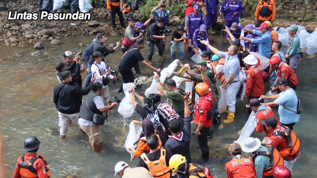 Sebanyak 150 ribu benih ikan dilepas ke aliran Sungai Cileueur sebagai upaya menjaga keseimbangan ekosistem perairan sekaligus mendukung kelestarian lingkungan hidup. Minggu, (26/4/2026).