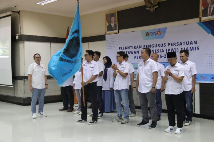 lintaspasundan.com, BERITA CIAMIS. Persatuan Wartawan Indonesia (PWI) Kabupaten Ciamis menggelar pelantikan untuk kepengurusan periode 2025-2026 di Aula BKPSDM, Kabupaten Ciamis, dilantik langsung oleh Ketua PWI Jawa Barat, Ahmad Sukri. Sabtu, (25/4/2026).